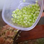 - Quand les oignons ont sué on ajoute la viande coupée en petits morceaux.