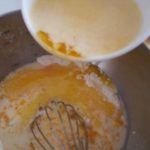 5/Puis on ajoute 200g de beurre fondu en 3 fois. Tout en mélangeant bien à chaque fois.
