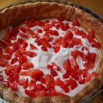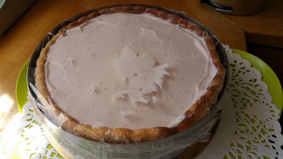 Si vous placez comme moi des morceaux de fraises au dessus , il faut les lustrer avec du nappage neutre ou de la confiture d'abricot diluée avec un peu d'eau passée au micro-ondes, et ne pas charger en fruits lourds en poids.