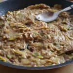 Une fois que les poireaux ont pris cuisson, on verse 200ml de crème liquide entière.